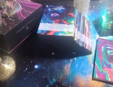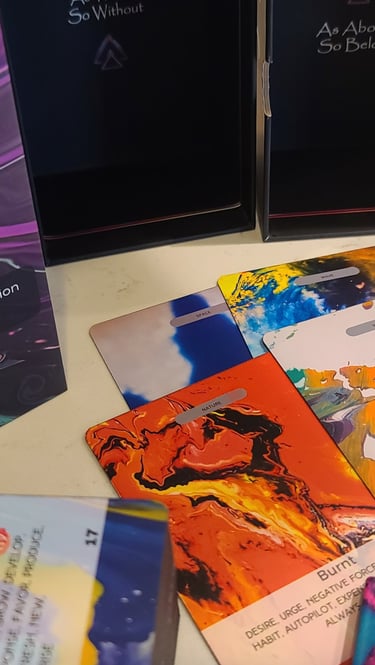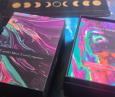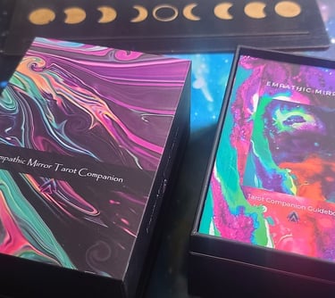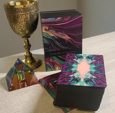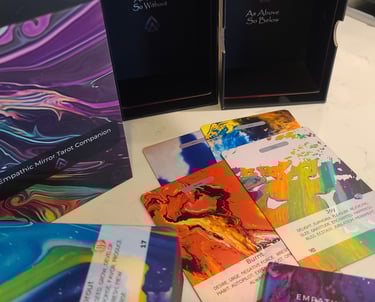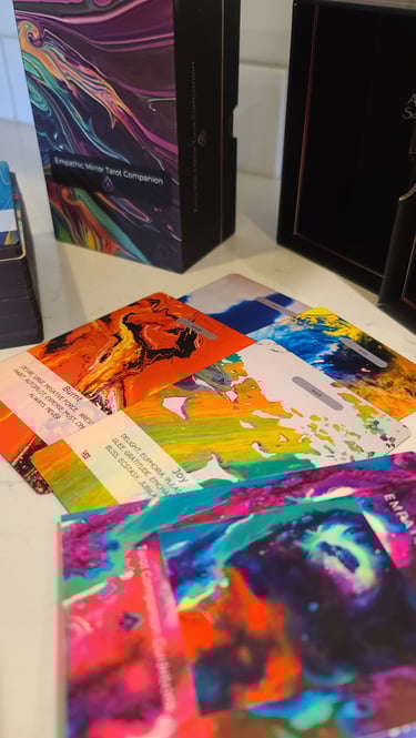 The Empathic Mirror Oracle Card Deck is a 123-card set that combines original abstract artwork with spiritual insights to foster personal growth. Each card features unique art to provide emotional clarity and enhance intuitive understanding.