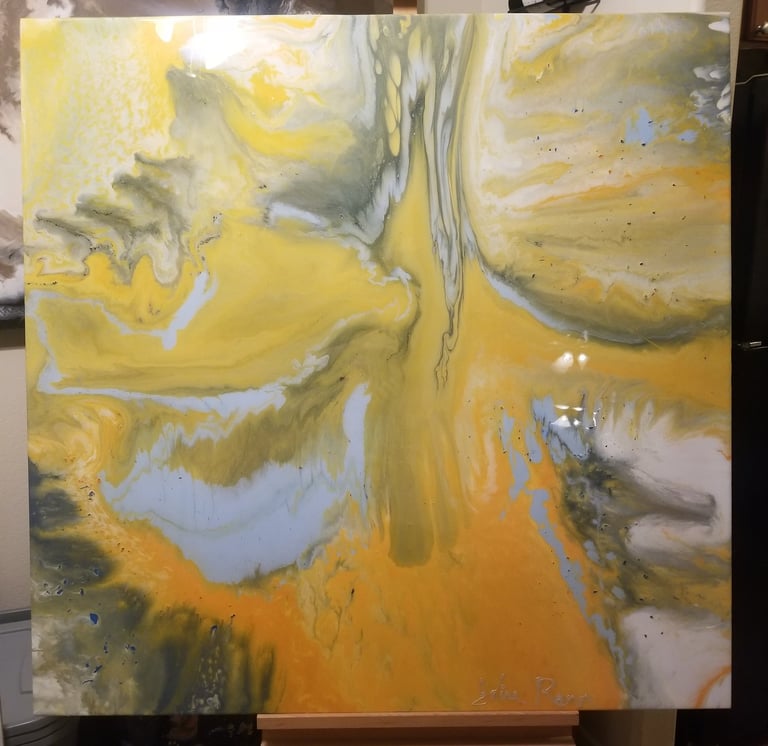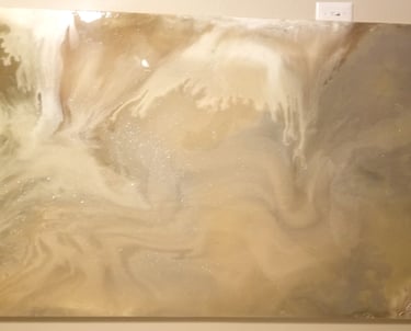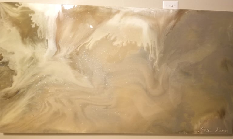Available: Rainbow Sea is an original 4-foot-by-8-foot resin painting created in 2020. This artwork features a harmonious blend of pastel colors, creating a serene and captivating composition. The use of resin enhances the depth and luminosity of the piece, inviting viewers to explore its intricate details. "Rainbow Sea" is available for purchase at $2,200.